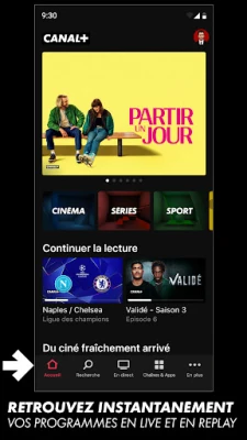 Avec l'application CANAL+, ne manquez plus les grands rendez-vous. Suivez le direct des événements majeurs et retrouvez vos émissions favorites en replay, même sans connexion internet. Bénéficiez de recommandations personnalisées pour une expérience enrichie, accessible sur tous vos écrans, où que vous soyez.