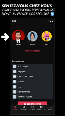 Vivez vos passions en direct grâce à un accès étendu à des centaines de chaînes, ou explorez des milliers de titres disponibles en replay, à visionner quand vous le souhaitez, en version originale sous-titrée ou doublée. L'application CANAL+ s'adapte à votre vie : emportez vos films et séries favoris partout avec vous grâce au mode hors connexion. Chaque membre de la famille bénéficie de son propre espace personnalisé, y compris un profil Jeunesse sécurisé, doté d'un filtre d'âge intuitif pour une découverte sereine des contenus adaptés, des tout-petits aux adolescents. Profitez également de recommandations intelligentes, finement ajustées à vos préférences, pour ne jamais manquer ce qui vous plaît.