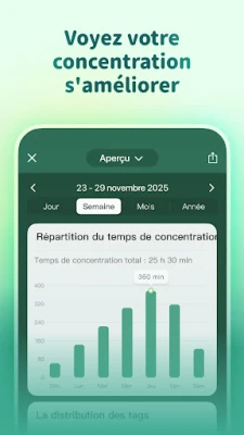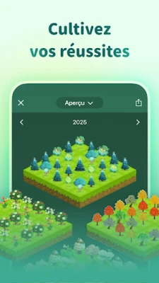 Le sentiment d'accomplissement que procure chaque arbre planté virtuellement est un puissant moteur pour maintenir votre discipline. Forest transforme la gestion du temps en une expérience visuelle et ludique, vous encourageant à résister à l'appel incessant de l'écran. Non seulement cela vous aide à vaincre la procrastination, mais cela vous pousse également à optimiser votre temps et à accomplir davantage. Suivez l'évolution de votre temps de concentration de manière élégante, débloquez une trentaine de nouvelles espèces d'arbres et des ambiances sonores apaisantes, et regardez votre forêt virtuelle s'étendre, devenant le témoignage silencieux de vos heures de travail acharné et de pleine conscience. Chaque session dédiée enrichit votre écosystème personnel et vous motive à atteindre vos objectifs quotidiens avec brio.