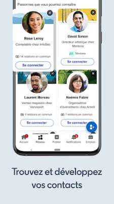 La LinkedIn Vacatures-app est bien plus qu'un simple outil de recherche : c'est une plateforme vibrante pour l'expansion de votre réseau professionnel. Interagissez avec des leaders d'opinion de votre secteur, suivez les entreprises innovantes et restez informé des dernières actualités et tendances du monde des affaires. Créez des connexions significatives avec des pairs et des experts, partagez vos propres contributions et discussions, et enrichissez ainsi votre parcours professionnel. Cette immersion dans une communauté dynamique multiplie vos chances de découvrir de nouvelles avenues et de propulser votre carrière.