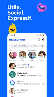 Messenger est l'application gratuite pour rester connecté. Communiquez avec vos proches, explorez vos passions avec d'autres utilisateurs et développez votre communauté. Exprimez-vous au-delà des mots, où que vous soyez, grâce à cette solution tout-en-un.