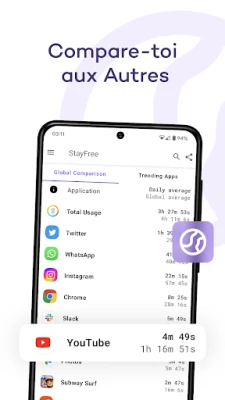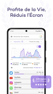 StayFree - Screen Time vous aide à maîtr maîtriser votre utilisation téléphonique. Visualisez et limitez votre temps d'écran pour améliorer votre productivité. Définissez des alertes et consultez des statistiques précises pour un meilleur contrôle de soi.