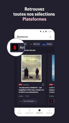 Naviguer dans l'offre télévisuelle et les catalogues de streaming n'a jamais été aussi simple. Le guide TV intégré à Télérama vous propose une vision complète des programmes sur deux semaines, filtrable selon vos genres favoris (cinéma, séries, jeunesse, sport) ou la prestigieuse notation de la rédaction (de « T » à « TTTT »). Personnalisez votre expérience en sélectionnant votre bouquet (TNT, Free, Orange, SFR, Bouygues, Canal +) et vos chaînes préférées parmi plus de 300 options, francophones et étrangères. De plus, un espace dédié vous oriente au sein des principales plateformes de streaming (Netflix, MyCanal, Disney+, Apple TV, Amazon Prime, TF1+, Arte, France.TV), vous aidant à repérer les meilleurs films, séries et documentaires disponibles en ligne, sans jamais vous perdre dans l'abondance.